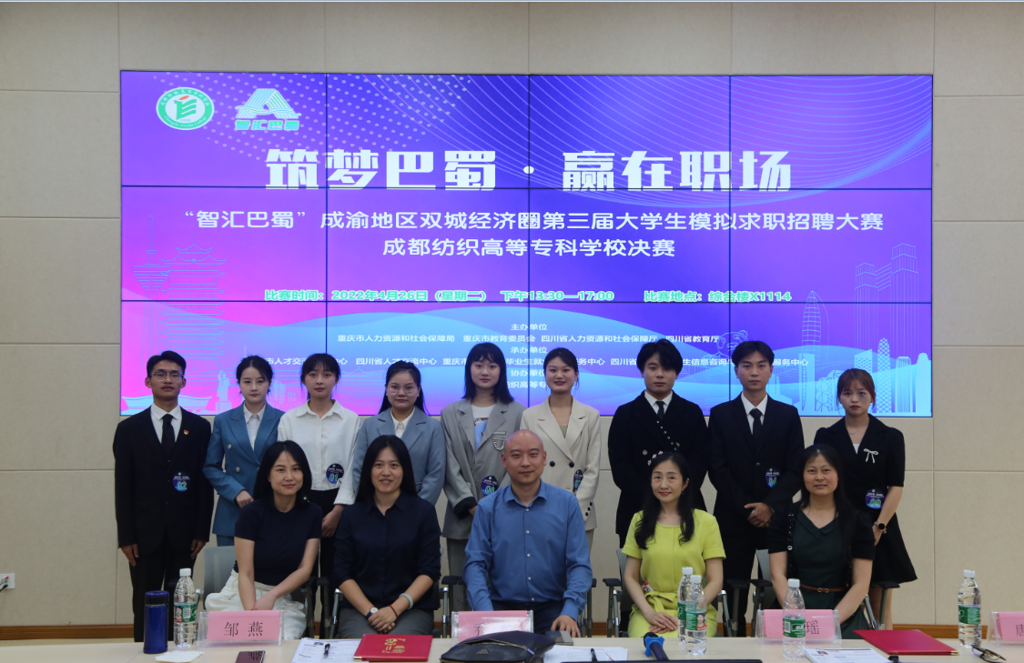 4月26日,“智汇巴蜀”成渝地区双城经济圈第三届大学生模拟求职招聘大赛成都纺织高等专科学校决赛在南苑综合楼X1114举行。