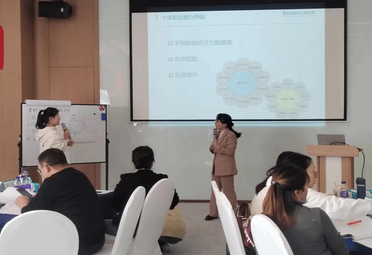 本次培训由北森生涯学院谷雨老师担任主讲。培训以学生需求为导向,内容涵盖就业意识唤醒,职业认知,求职技巧,生涯选择,简历制作,模拟面试,就业心理调适等,同时聚焦疫情后时代大学生就业指导议题,帮助老师们系统掌握就业指导理论和工具,更新就业指导理念与方法,理解就业指导工作的本质内涵。培训以PPT课堂讲授为主、穿插游戏互动、分组讨论、视频学习、案例分析等环节,还设置了模拟面试环节,邀请24位学生进行实战演练,帮助参训老师认识并深度体验“雇主导向”的求职面试指导服务,建立“雇主视角”思维方式,增强就业指导的有效性。