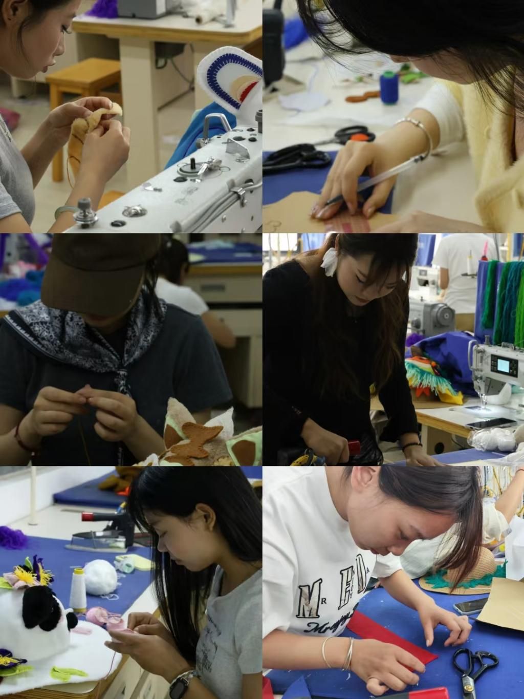 在制作分享环节,谌琴、李维两位老师生动揭秘了花帽子从设计到成型的全过程。她们分享了学生在设计、制版、裁剪、刺绣、装饰等环节中克服的重重困难,以及在反复实践中掌握非遗技艺与手工劳动技巧的成长故事。“一针一线都是对耐心的考验,也是对传统技艺的致敬。”参与制作的欧雪琴同学在分享时感慨道。