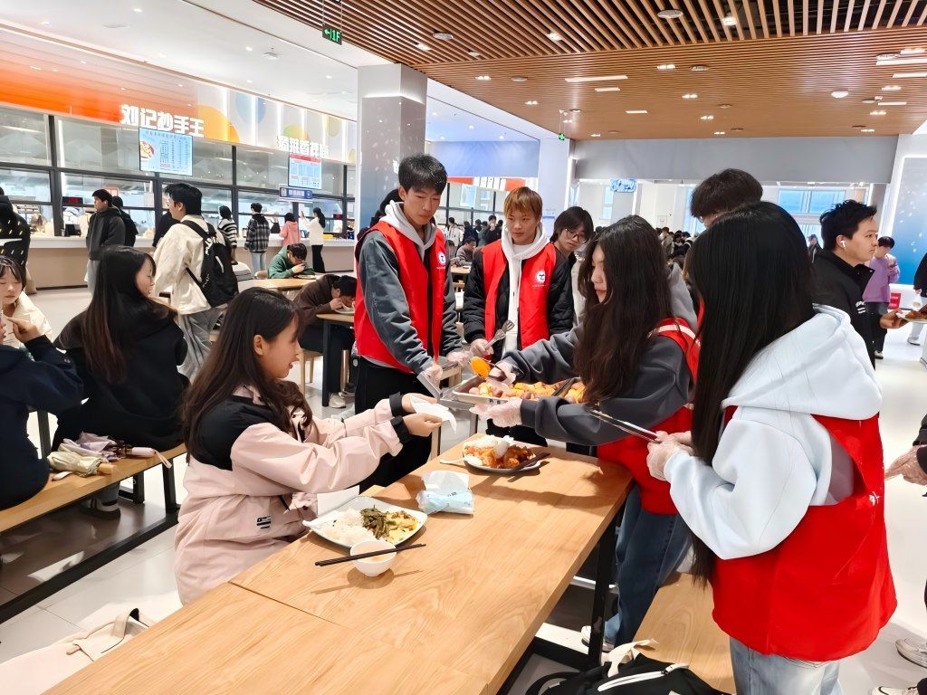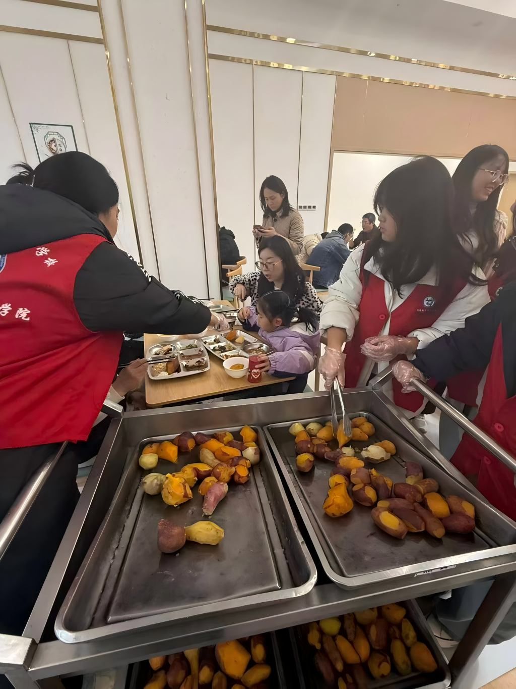 活动当天,在劳动教育指导老师冉龙奎、许梦雪、李楠的悉心指导下,同学们热情投入,分工协作。大家围聚在一起,认真地清洗着沾满泥土的红薯,仔细地为红薯削皮,再将处理干净的红薯送入蒸锅。从生疏到熟练,从手忙脚乱到井然有序,整个准备过程不仅锻炼了同学们的动手能力,更在协作中增进了彼此的情谊。在犀浦校区的南苑食堂和邛崃产教园区的华章2019餐厅,热乎乎、软糯香甜的红薯被整齐摆出,志愿者们推着餐车给老师和同学们分享,香糯的红薯瞬间成为了最受欢迎的美食。
