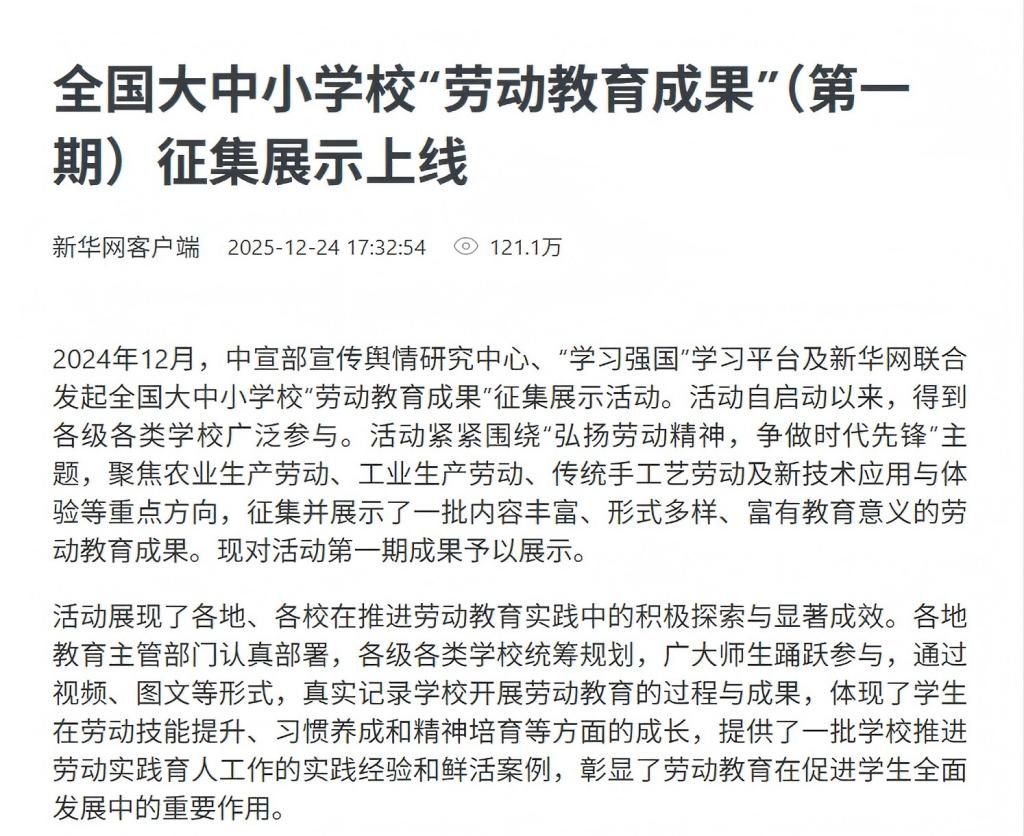 近日,由中宣部宣传舆情研究中心、“学习强国”学习平台及新华网联合发起的全国大中小学校“劳动教育成果”征集展示活动第一期成果揭晓,我校申报的《经纬匠心 劳动筑梦》案例从全国众多成果中脱颖而出,获评第一期“标杆案例”。