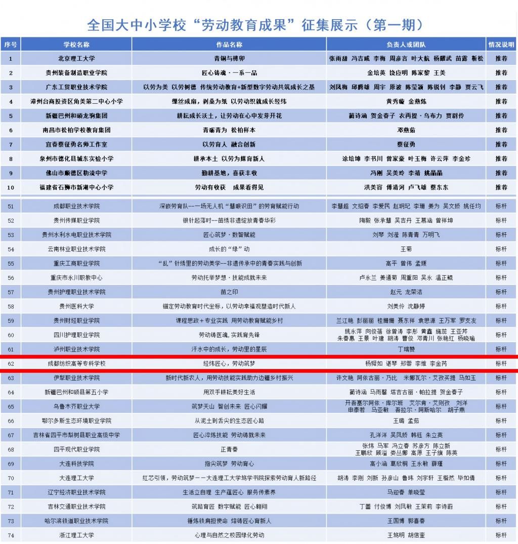 从课堂上的纺织技艺实操到田间地头的作物培育,从非遗手作的匠心传承到乡村文创的创新实践,案例真实记录了学生在劳动中提升技能、养成习惯、培育精神的全过程,生动展现了学校“劳动—专业—产业”的职教特色育人范式。此次获评“标杆案例”,是对学校劳动教育创新实践的高度认可,也为职业院校劳动育人提供了可借鉴的鲜活经验。