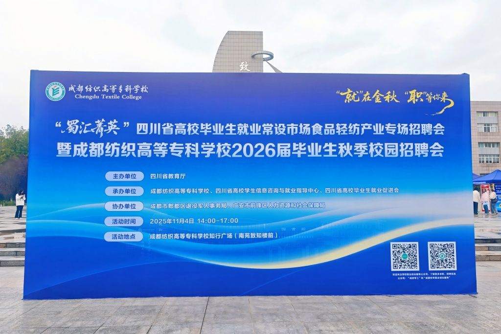 11月4日,“蜀汇菁英”四川省高校毕业生就业常设市场食品轻纺产业专场招聘会暨2026届毕业生秋季校园双选会在我校犀浦校区知行广场举行。广安市前锋区人社局、郫都区退役军人事务管理局、西南电梯联盟组团来校招聘,累计135家用人单位到校选拔人才,提供岗位2000余个,涵盖纺织服装、新材料、电子信息、高端制造、商贸旅游、现代物流、绿色食品、连锁经营、电梯、教育等多个行业。活动吸引了3000余名毕业生前来求职应聘,其中包括200余名联合培养本科毕业生,现场签订就业意向协议400余份。