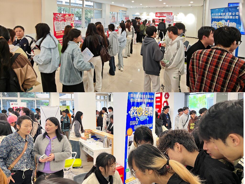 4月3日,我校2026届联办职业本科毕业生专场招聘会在犀浦校区“一站式”就业育人基地举行,中国核工业二三建设有限公司、成都航发机器人有限公司、新疆中泰聚酯纤维材料有限公司等16家优质企业参会,提供就业岗位400余个,覆盖纺织服装、智能制造、电子信息、新材料等领域,200余名联办本科毕业生到场求职应聘。